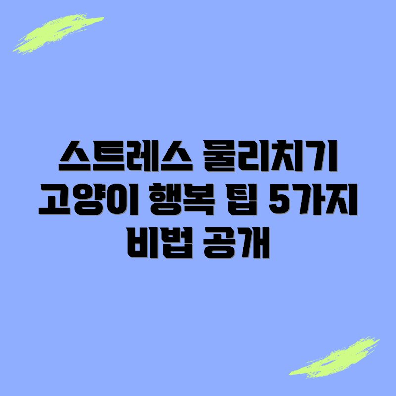 A: 고양이를 위한 스트레스 해소 방법으로는 안전한 공간 만들기, 놀이시간 확보, 자극적인 장난감 제공, 고양이 전용 쉼터 마련하기, 그리고 정기적인 건강 체크가 있습니다. 이 방법들은 고양이의 스트레스를 줄이는 데 도움을 줄 수 있습니다.